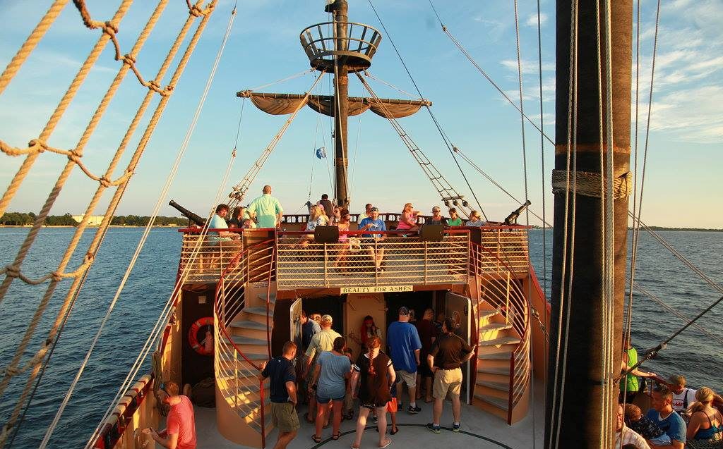 The Buccaneer is a 100-foot, triple deck vessel, U.S. Coast Guard approved for up to 149 passengers including any musicians, caterers, photographers, or special event personnel. The vessel is equipped with a galley, snack bar, restrooms, and a state-of-the-art sound system. Rates vary seasonally and include the boat, the captain, and the crew for a minimum of two hours.
